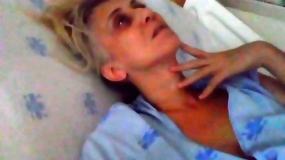 丰满的乳房护士炫耀她充足的架子并抚摸她的阴户